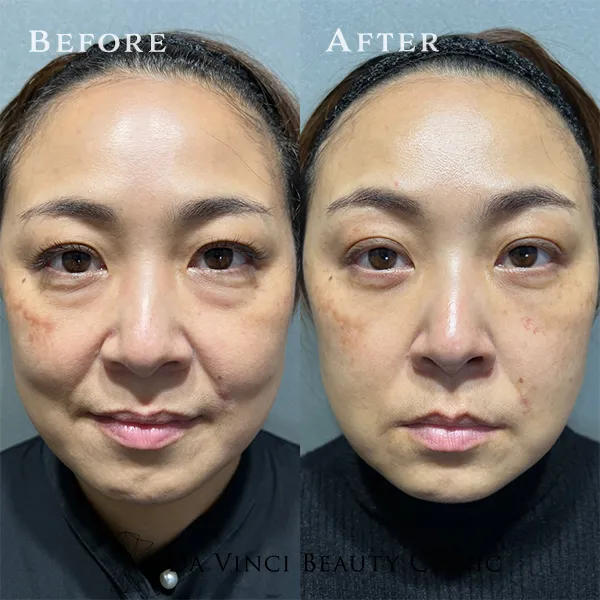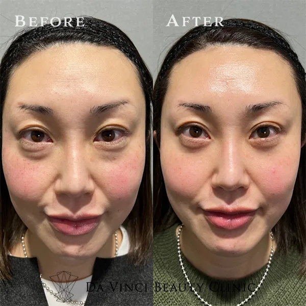眼窩脂肪を再配置することで、目元のふくらみやクマを目立たなくする効果があります。