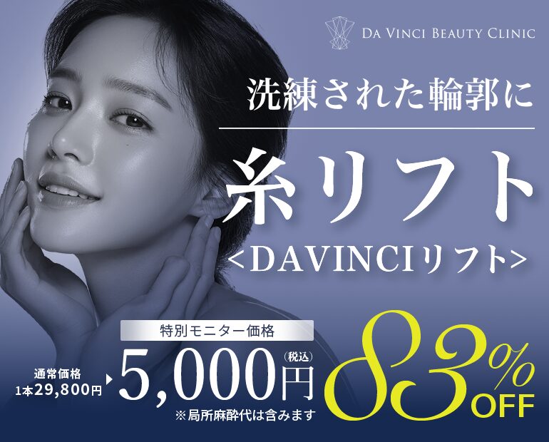 身体への負担を最小限に抑えた10分程度の施術で、ダウンタイムや痛みをほぼゼロにまで追求したDAVINCI BEAUTY CLINICの人気No.1の施術です。