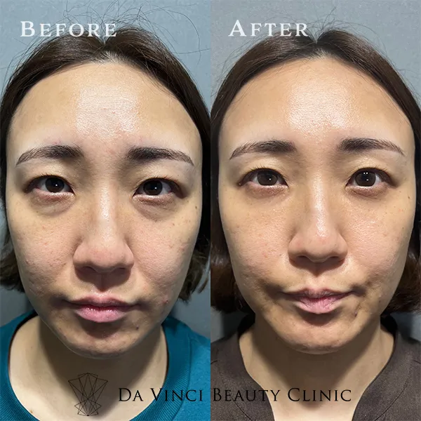 自身の体から脂肪を採取し定着しやすい様加工した後、目の下の凹みを改善する方法です。