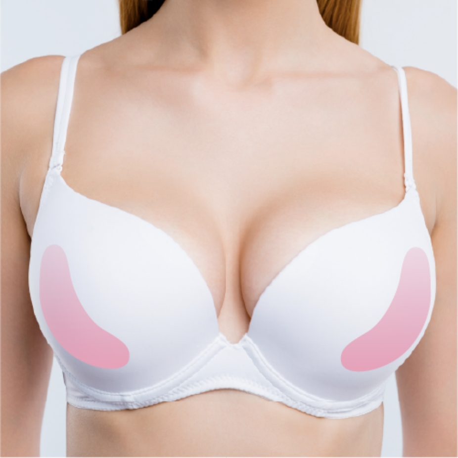 丸みのある女性らしいバストを目指したい方や、逆三角形のバストにお悩みの方には、胸の下外側にヒアルロン酸を注入します。これにより、自然なボリューム感と美しい丸みを作り、バスト全体のシルエットを柔らかく整えます。