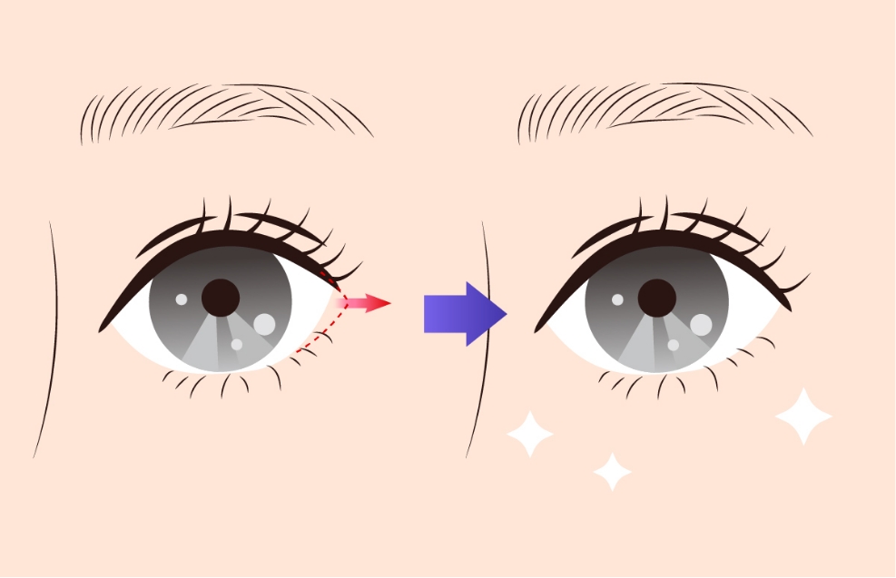 目尻切開は、目の外側を数ミリ切開することで、目全体を大きく見せる施術です。