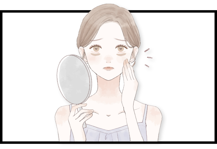 お顔の印象の大半は目元で決まるためクマがあることで、疲れていないのに疲れた印象になったり、目元に影ができ暗い印象に見えたりします。また、クマによりたるみができることで老けた印象になることもあります。