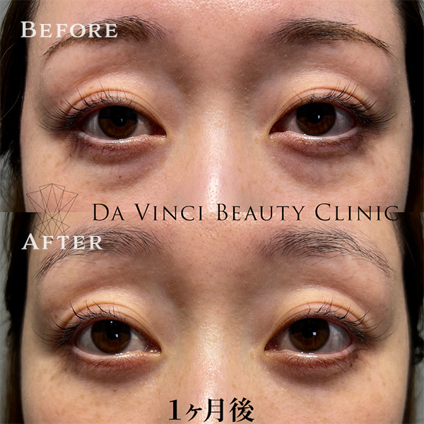 目元の膨らみやたるみやくぼみが改善され、 疲れた印象がなくなり若々しく健康的な印象の目元に変化します。 クマがなくなるだけでマイナス10歳以上の効果が期待できます。 また、メイクで隠せなかったクマも改善し、目元の印象が明るくなります。 脂肪と境界が曖昧になっていた涙袋がはっきり露出するため、 涙袋がぷっくりとします。