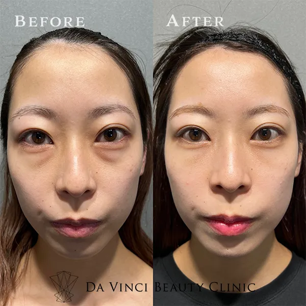 経結膜脱脂のみでは目の下が凹む方に適応の施術です。