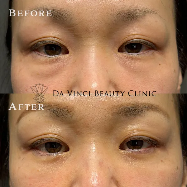 経結膜脱脂のみでは目の下が凹む方に適応の施術です。