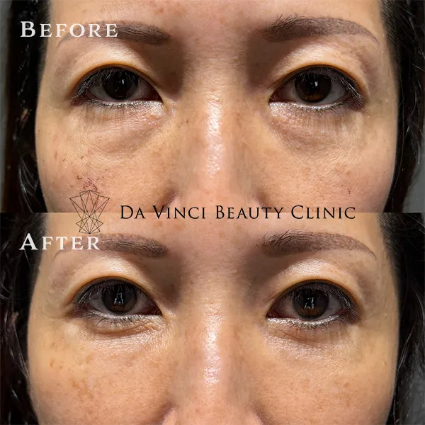 自身の体から脂肪を採取し定着しやすい様加工した後、目の下の凹みを改善する方法です。