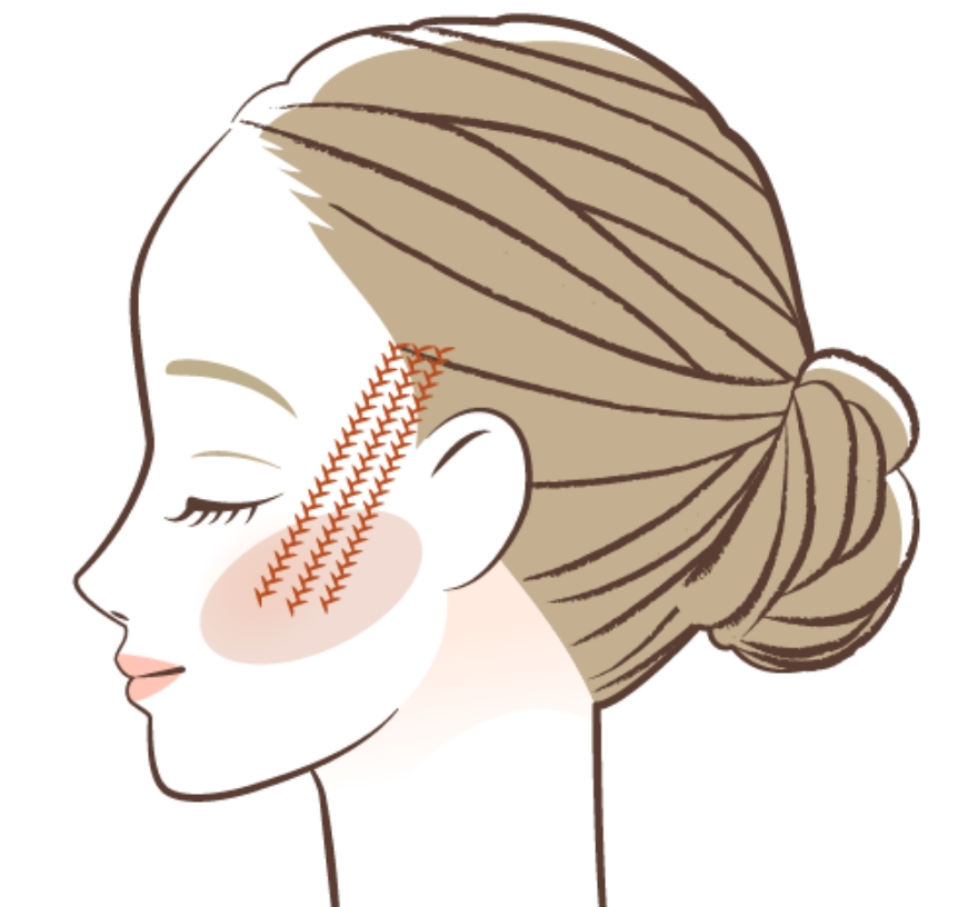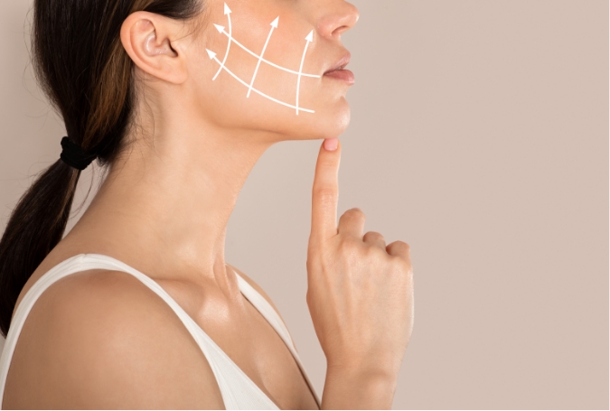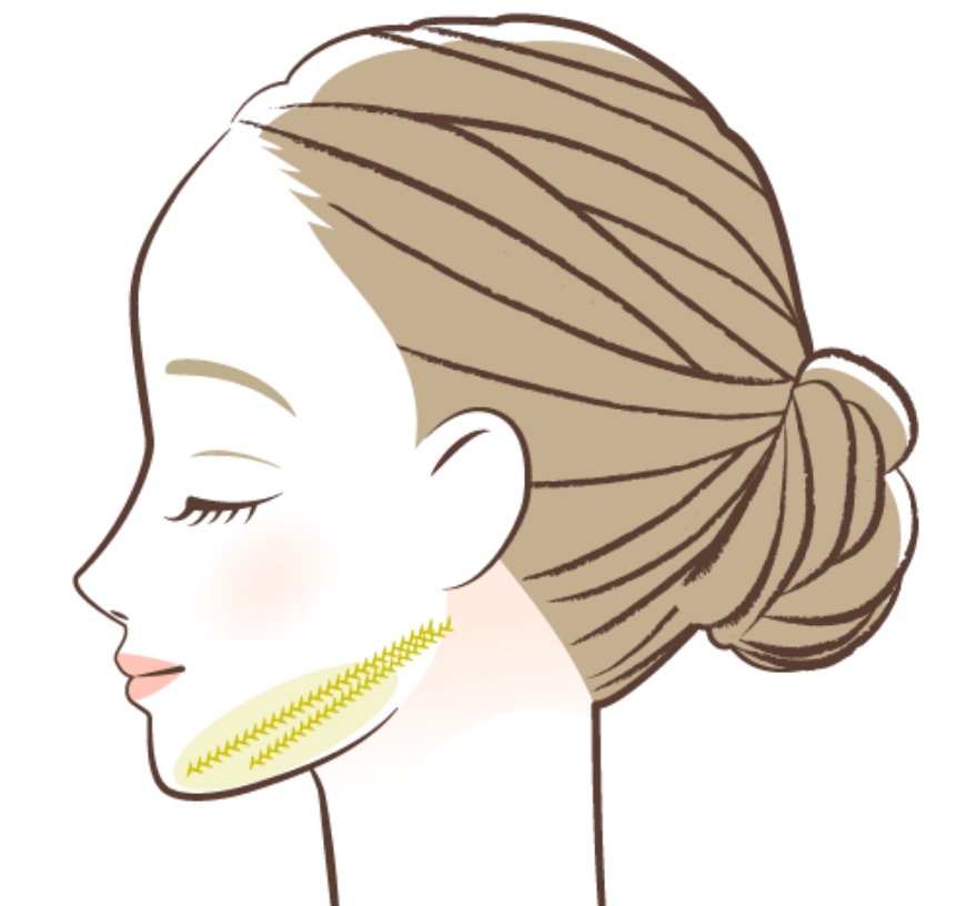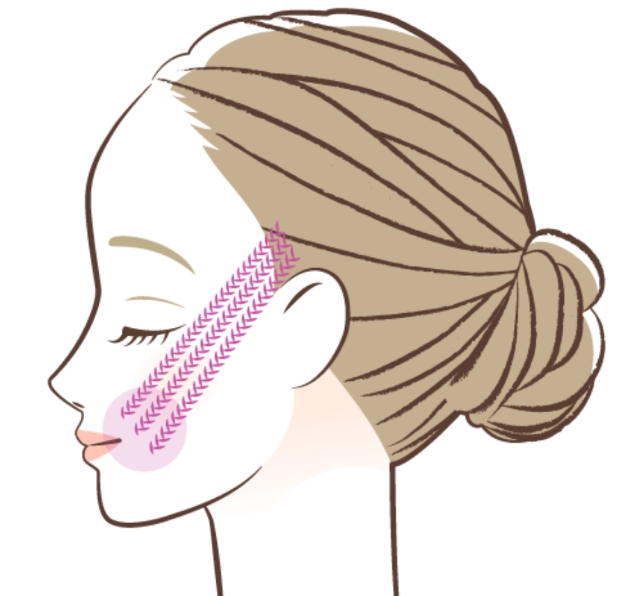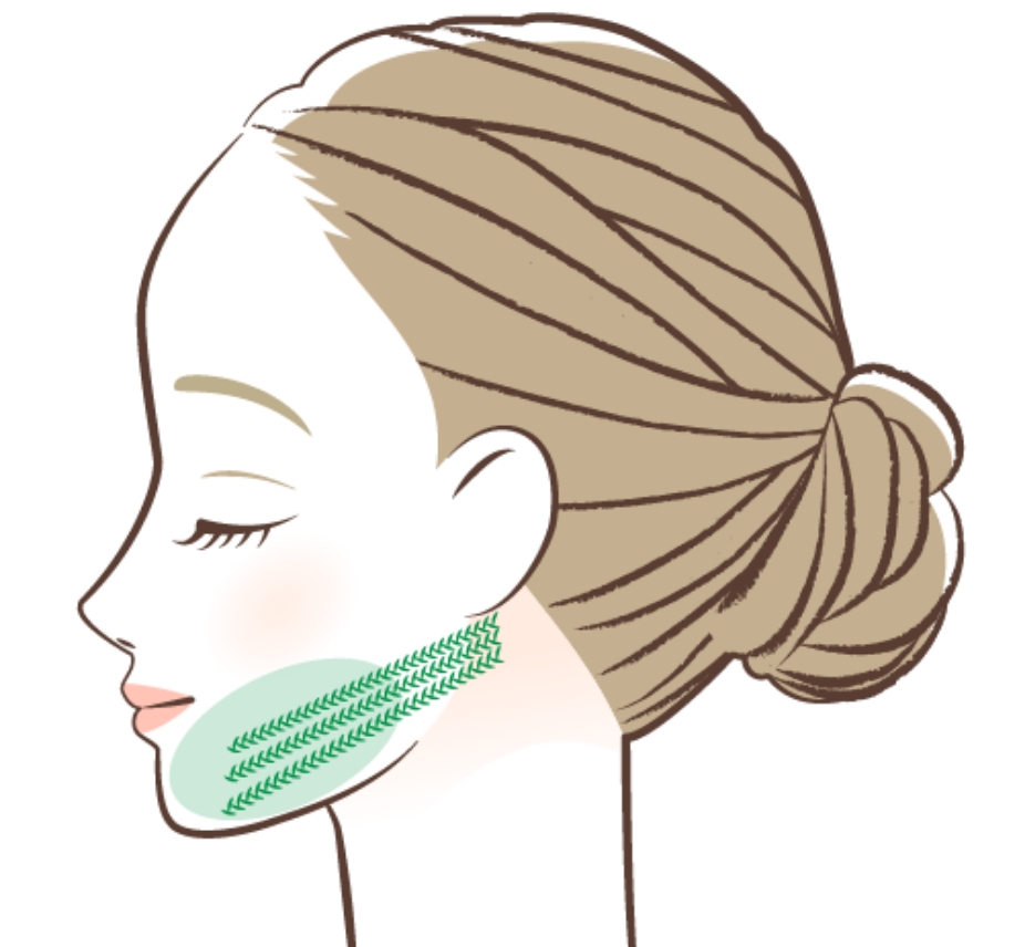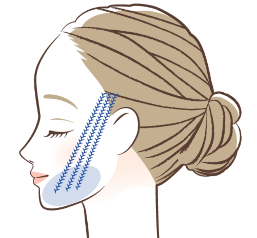 頬のたるみを引き上げてフェイスラインをすっきりとさせます。
